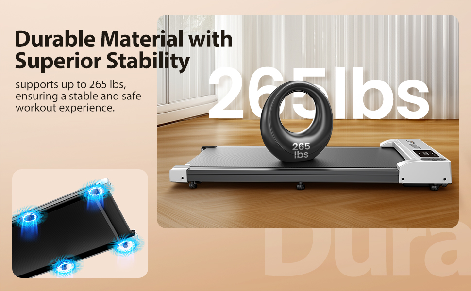 Constructed from durable alloy steel, the treadmill can bear up to 265 lbs, guaranteeing a stable and safe workout.